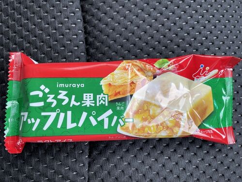 今日のおやつでございます。 コンビニで見かけて、気になってたアイス! ごろろん果肉アップルパイバー いやー、これどうなんだろ?美味しそうだけど失敗しそうな雰囲気もあるよねーw でも気になるから買ってみました。 開封! うん、なんか小さくね?でもま…