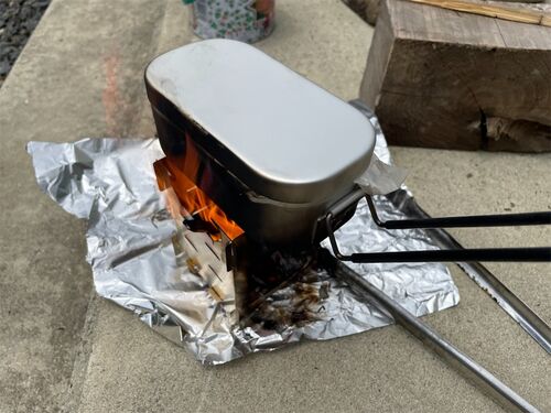 さて、エンジョイアウトドアの付録を使って遊びます。 付録というと、しょぼい感じがするけど、エンジョイアウトドアは付録がメインだよね。てかこの会社の商品は全部そうか。 焚火ストーブとメスティンでなんかするか。 ということで。。。 庭の焚火台とい…