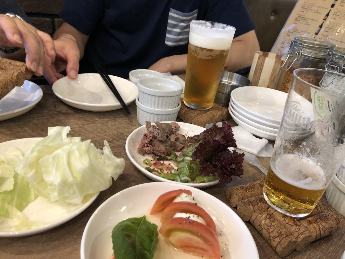 ワインの店だけど、まずはビール飲むよね。暑いし。