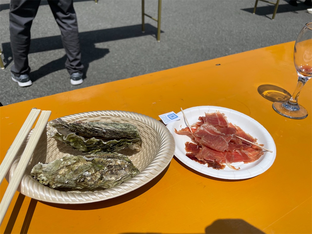 あさり、いか、えび、パプリカ、ズッキーニが入ってる。
